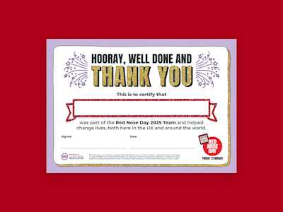 Celebrate your epic fundraising with your very own Red Nose Day certificate